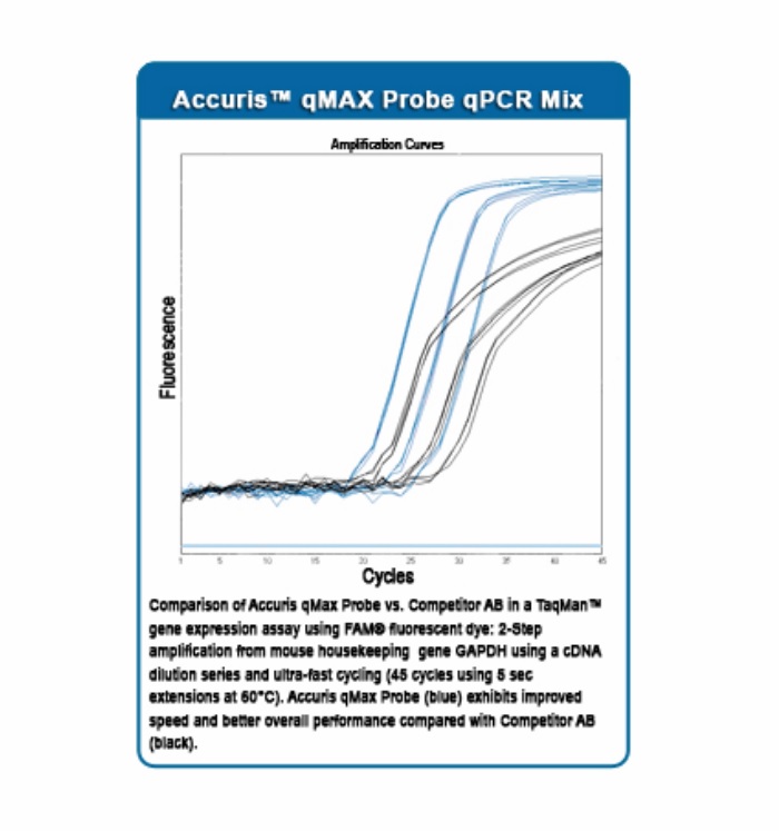 qMax Probe qPCR Mix can be used to detect any DNA template, including genomic DNA and cDNA. Available in high, low and no ROX formulations, qMax Probe is compatible with most qPCR instruments. To check compatibility with a specific instrument, visit www.accurisusa.com/PCRselector.